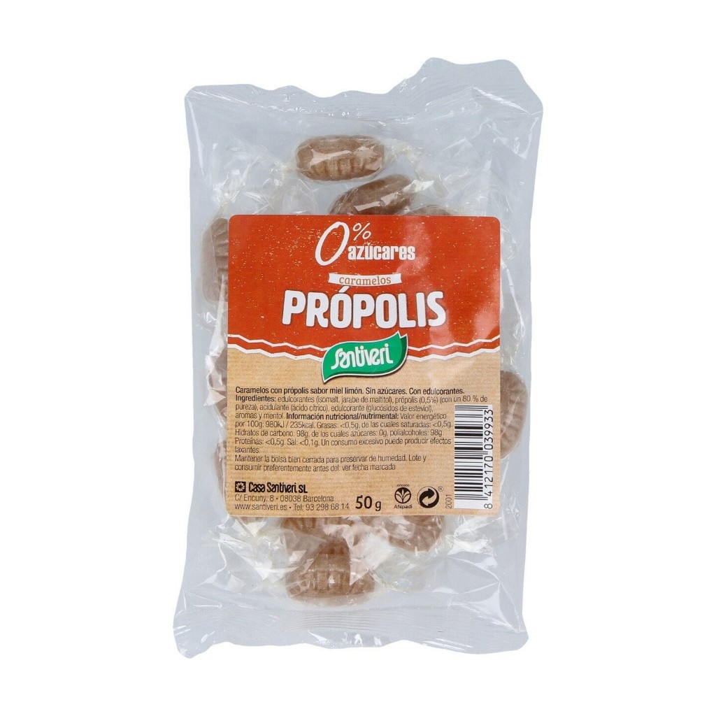 Los caramelos de própolis de Santiveri, con un agradable sabor a miel y limón, ayudan a despejar las vías aéreas y a suavizar la garganta en caso de irritación. Especialmente interesantes en casos de catarros, resfriados o congestión gracias a su composición con un 100% de ingredientes de origen natural.