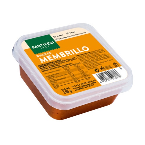 El Membrillo de Santiveri está elaborado a partir de la fruta descorazonada y tamizada de la Cydonia oblonga, consiguiendo un membrillo dulce muy apreciado por su agradable sabor y textura y siendo fuente de fibra.