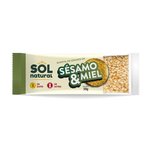 Barrita de Sésamo y Miel, sIn gluten y sin lactosa, de Solnatural son barritas crocantes integrales, ideales para comer entre horas.