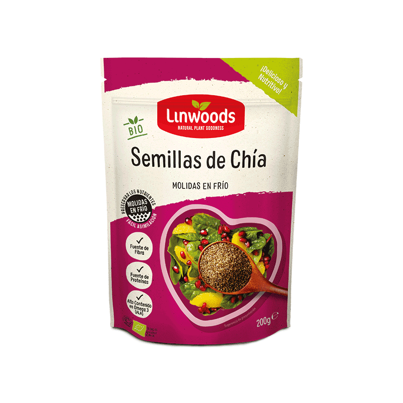 Semillas de Chia Molidas Bio de Linwoods es una de las fuentes vegetales con la mayor concentración de los ácidos grasos Omega-3. También contienen una importante cantidad de antioxidantes, principalmente flavonoides, betacaroteno y vitamina E. Aporta un 20% de proteínas, con aminoácidos esenciales y no esenciales.