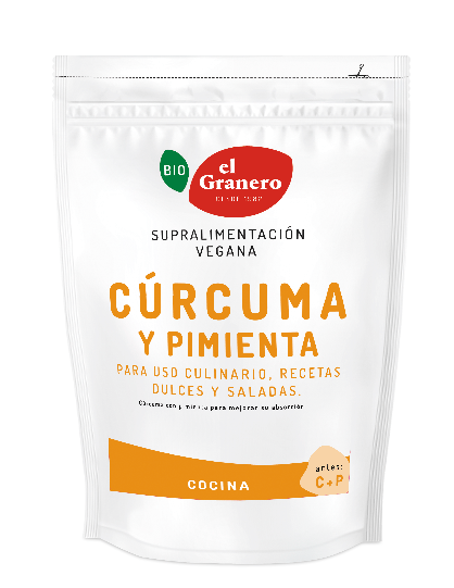 Cúrcuma y Pimienta Bio de El Granero Integral es un superalimento a base de cúrcuma, especia empleada tradicionalmente por sus múltiples beneficios para el organismo. Ideal para recetas dulces y saladas.