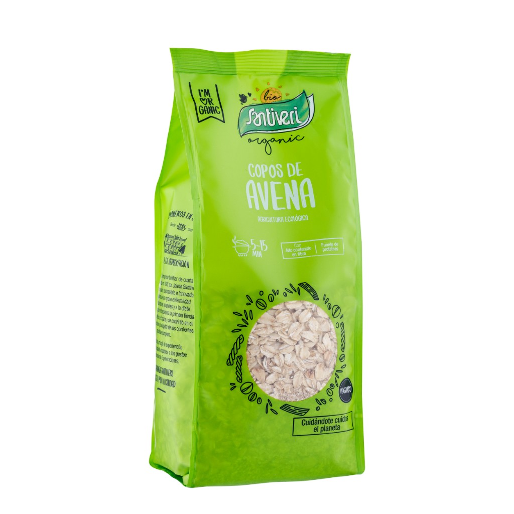 Los copos de avena integral de Santiveri aportan gran cantidad de fibra soluble que aporta betaglucanos que ayudan a mantener los niveles adecuados de colesterol en la sangre. Ésta riqueza en fibra ayuda a mantener sana la microbiota intestinal regular el transitivo, contribuyendo a prevenir el estreñimiento. Además, tiene buenas cantidades calcio, fósforo, hierro y vitaminas B1, B2, B3 y E, así como de proteínas y ácidos grasos insaturados.