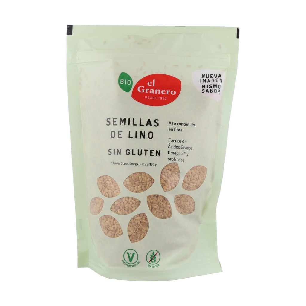 Las Semillas de lino dorado de cultivo ecológico de El Granero Integral son un complemento nutricional que posee efectos positivos sobre distintas funciones del organismo. Se componen mayoritariamente de aceites, ricos en ácidos grasos Omega 3 y Omega 6, también es rica tanto en fibra soluble como insoluble, que contribuye a estabilizar los niveles de glucosa en sangre, reducir el nivel de lipoproteínas, y eliminar toxinas presentes en el intestino. Ayuda a regular el tránsito intestinal.