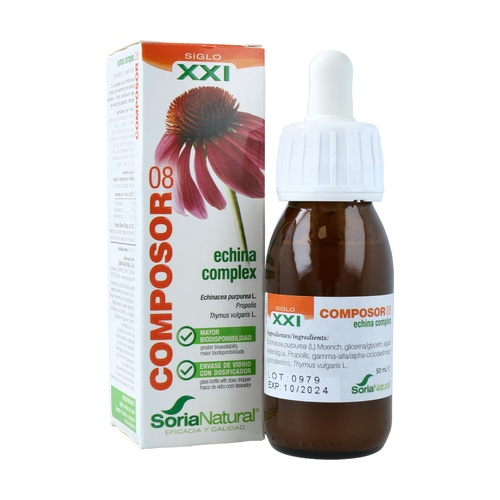 Composor 8 Echina Complex es una mezcla de extractos y aceites esenciales de equinácea, propóleo y tomillo, indicado para elevar las defensas del organismo contribuyendo así a prevenir y eliminar las infecciones.