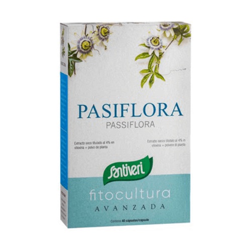 INGREDIENTES: extracto seco de pasiflora (Passiflora incarnata L. – parte aérea) titulado al 4% en vitexina, gelatina vegetal, antiaglomerantes (dióxido de silicio y estearato de magnesio).