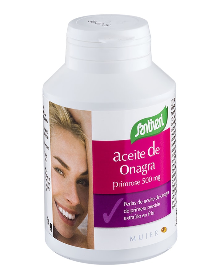 El aceite de Onagra de Santiveri es de primera presión extraído en frío de las semillas de Onagra (Oenothera biennis L.), acompañada de vitamina E.