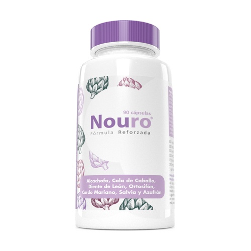 Nouro es un complemento alimenticio que aporta Inulina, sílice, sinensetina, cardo mariano, cinarina, ácido rosmarínico, safranal. Formulado para casos de tendencia a la retención de líquidos.