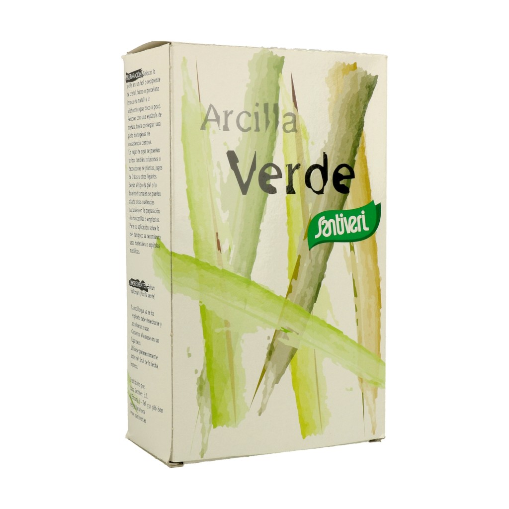 Arcilla Verde Santiveri es rica en minerales y oligoelementos que la convierten en un excelente remedio natural. Aplicada sobre el rostro como mascarilla ejerce un efecto purificante y suavizante favoreciendo la eliminación de impurezas y dejando un cutis terso y suave. Aplicada sobre el cuerpo actúa como un tónico, calmante y remineralizante de la piel, proporcionando una agradable sensación de descanso.